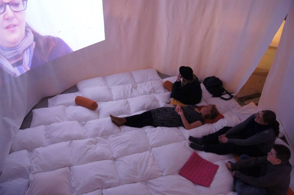 Here you can lay down and watch a 30 min movie of people sharing their most strong thoughts on peace and how it influences their lives.